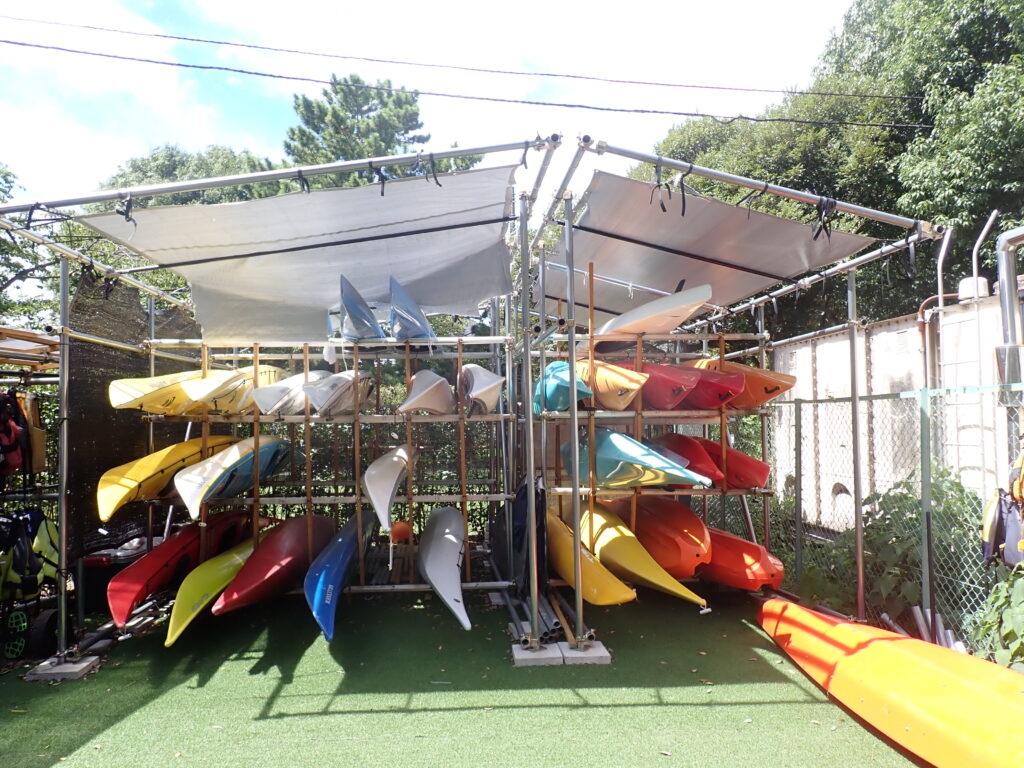 CLUBHOUSE 2024.01.022023.08.29 艇庫 シングル・タンデム・レース艇・レクカヤック置けます。 クラブメンバーで作りました。メンテナンスも自分たちで行います。 着替え 更衣テントがありフレキシブルに着替えができます パドル・スプレースカート・その他備品